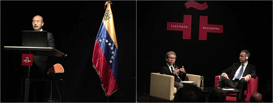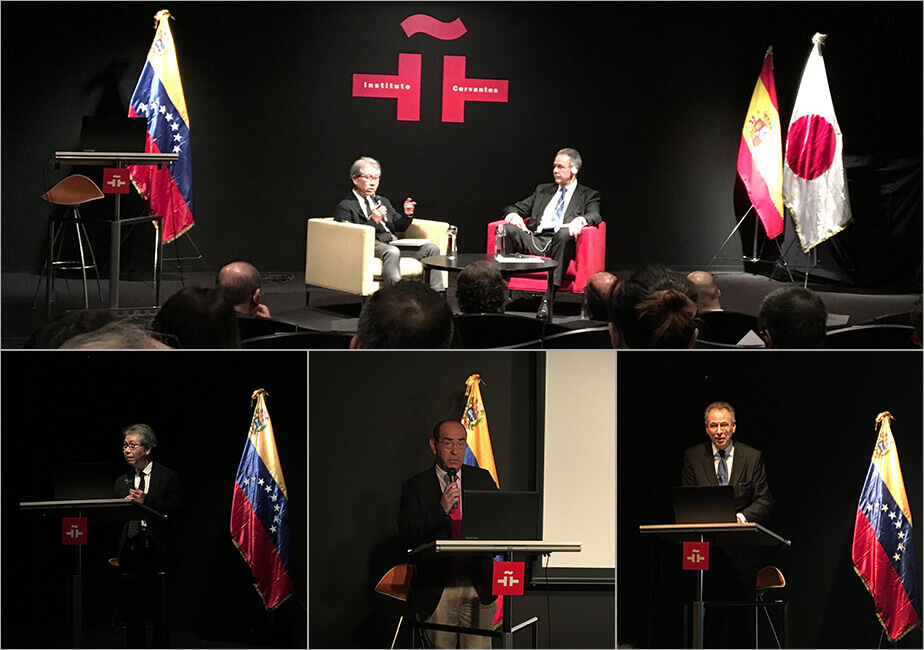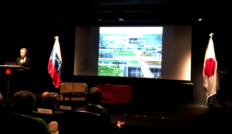 イベントでは、セルバンテス文化センターのアントニオ・ヒル・デ・カラスコ館長の開会の辞に次ぎ、セイコウ・イシカワ駐日ベネズエラ大使が歓迎の挨拶とイベントの紹介を行いました。その後、ビジャヌエバを追った31分間のドキュメンタリーを上映。上映内容を踏まえ、ラーゴ大使がビジャヌエバの作品、及びブラジル人建築家のオスカー・ニーマイヤーやロバート・ブール・マルクスとビジャヌエバとの協働について説明されました。ラーゴ大使は、建築の専門家としての豊富なキャリアでも知られています。次いで、著名な建築家である山本理顕さんがご自身で手がけられたプロジェクトを紹介。ビジャヌエバ作品の人間性と共通するものがあり、対比されるものでした。イベントの締めくくりは、当日のプレゼンターお二人によるディスカッション。ビジャヌエバの重要性と社会的意義に溢れたその作品群について、また都市建築におけるその社会的意義がいかに現代の建築家に影響とインスピレーションを与えるかについて、熱いトークが繰り広げられました。